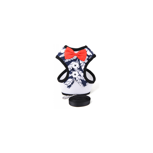 Pet H-Harness & Leash Blue Color with Flower BG-Q1004 (M)