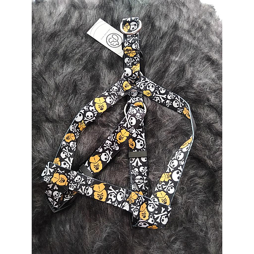 Pet H-Harness & Leash Pink Pattern with Black ribbon BG-B1009 (M)
